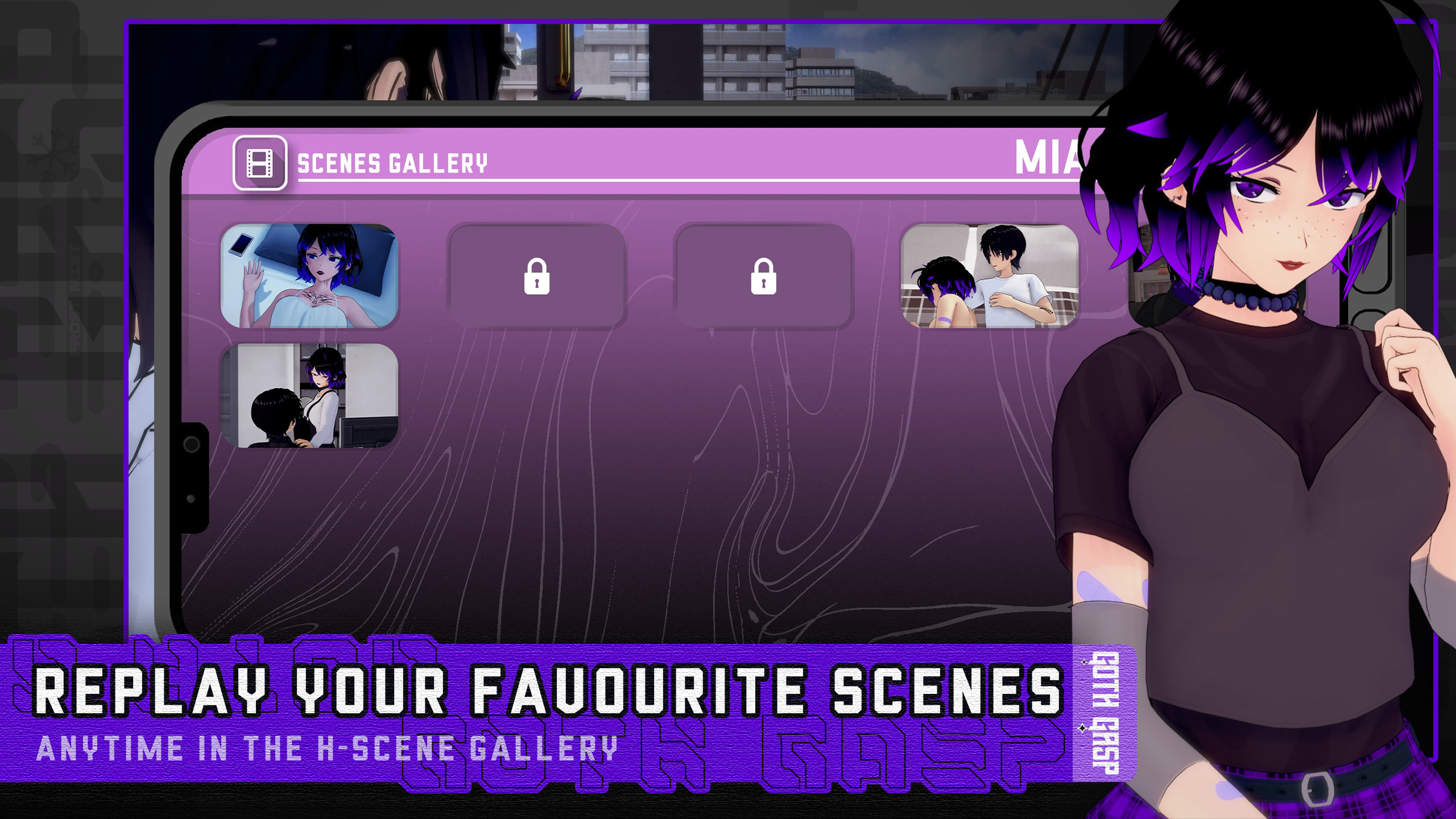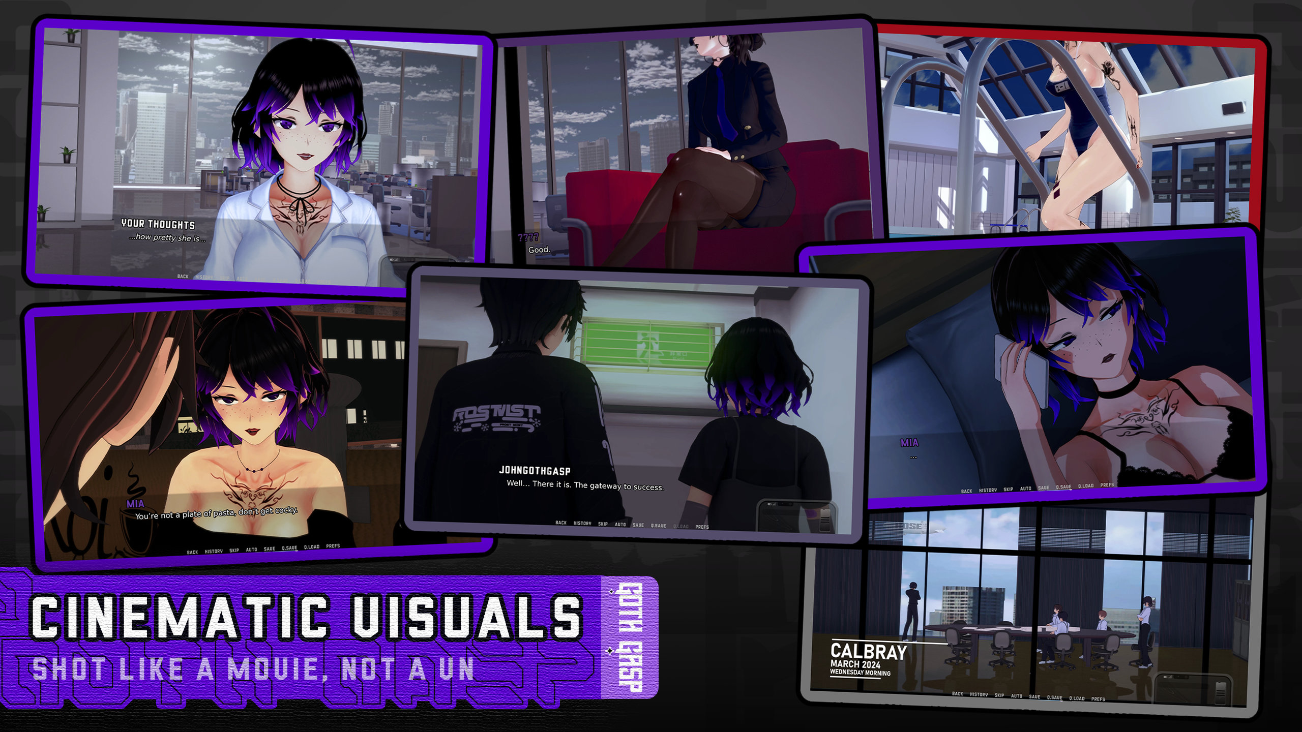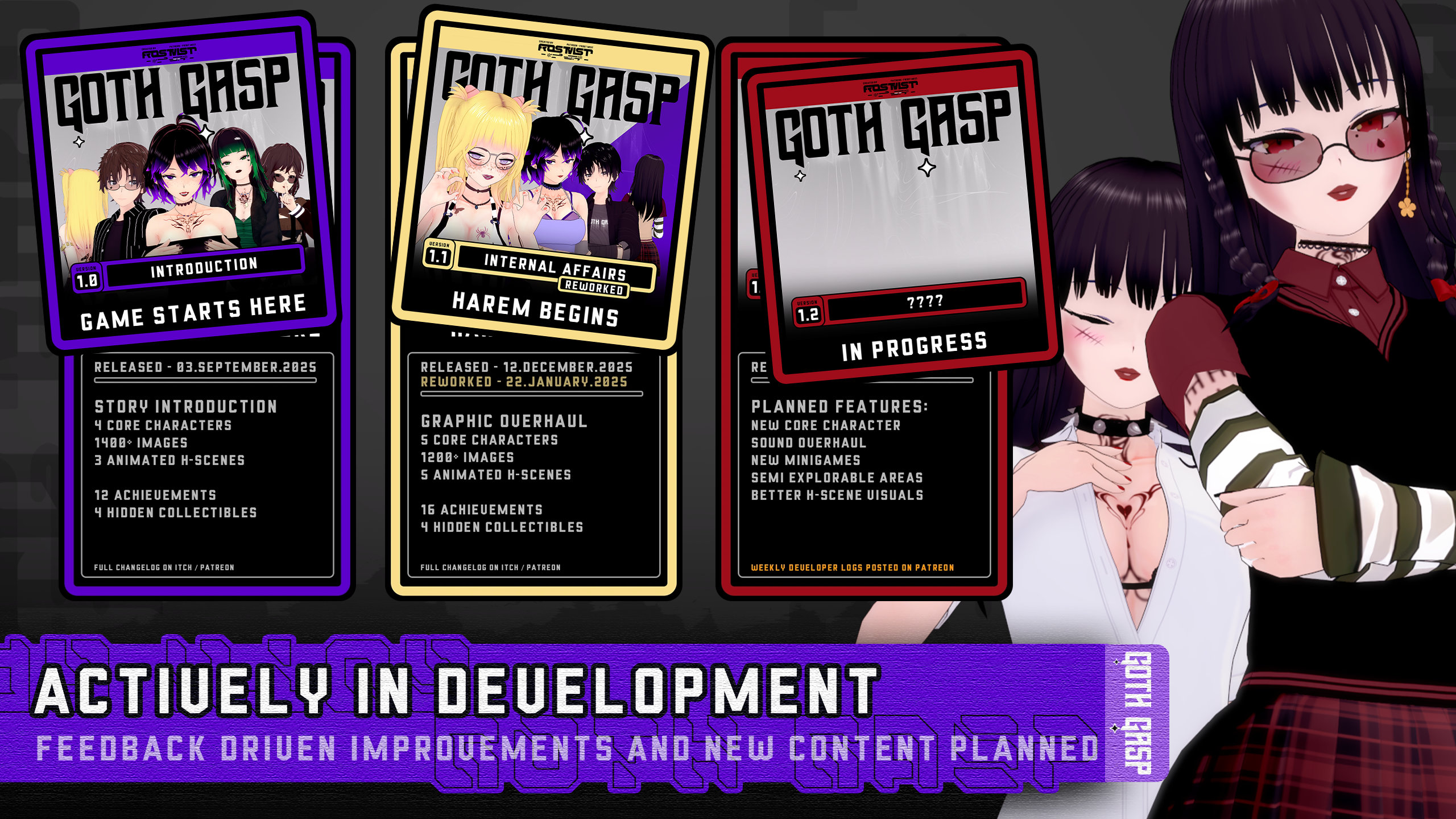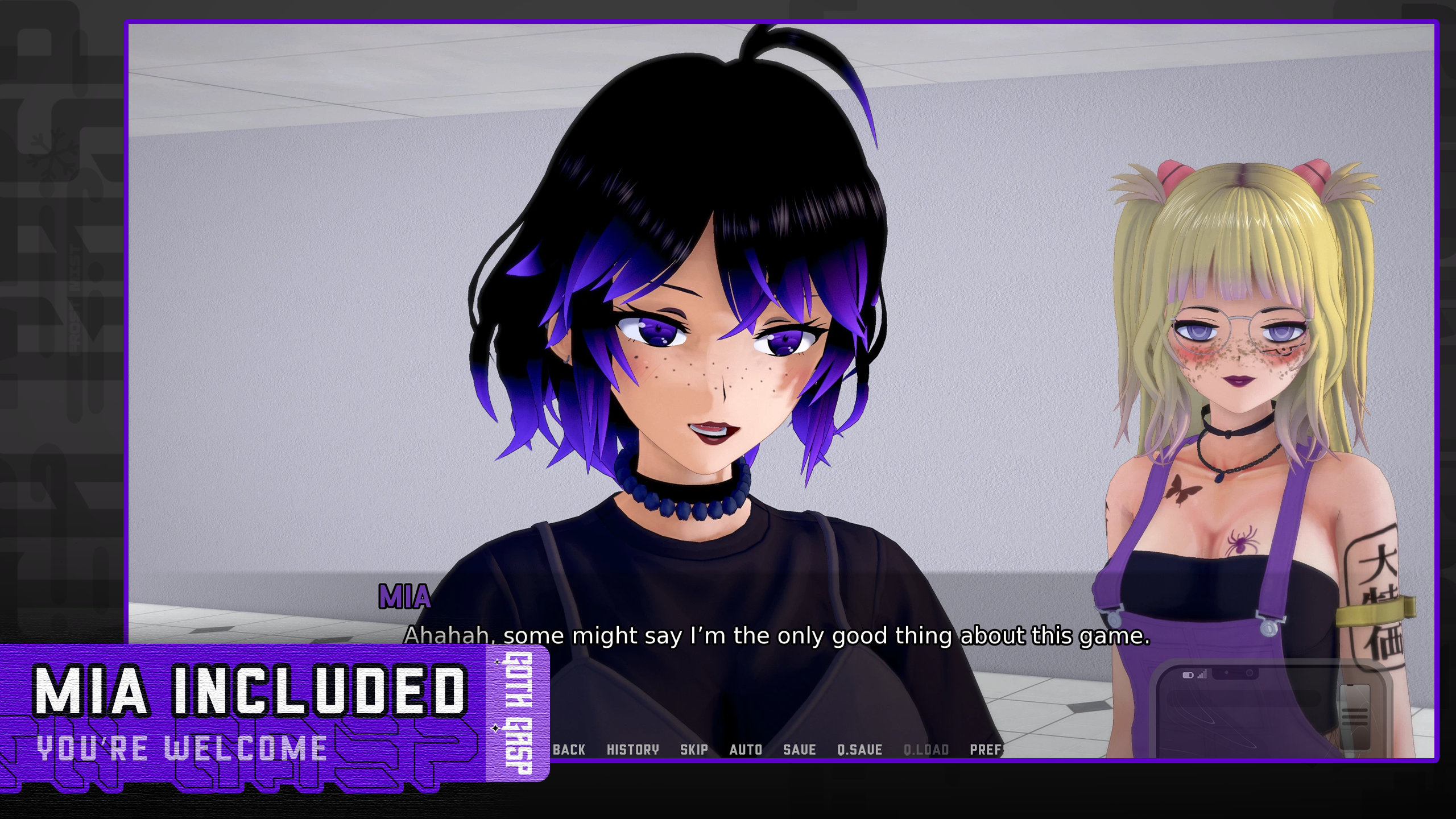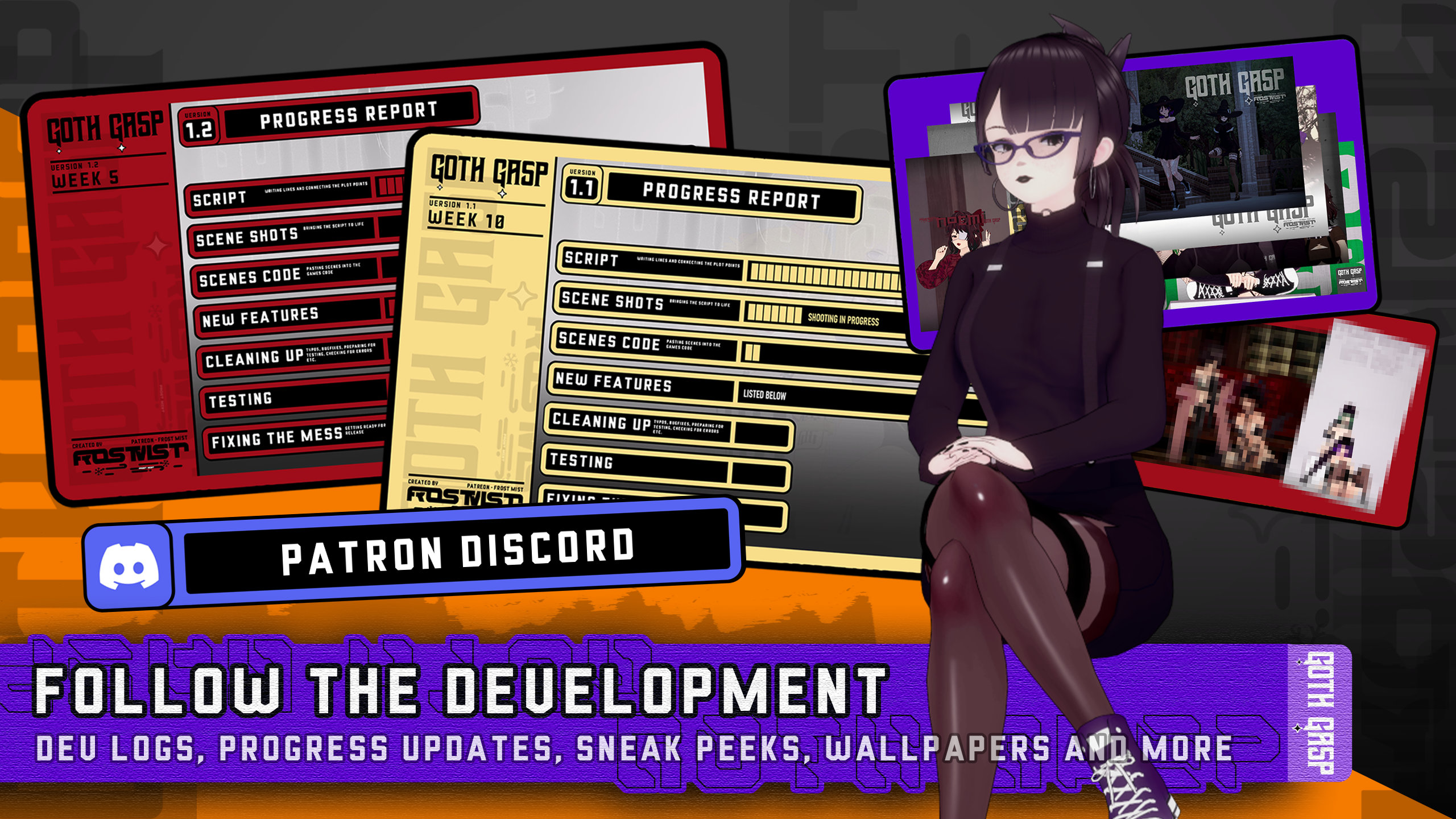 Hi! I'm Frosty and I'm creating Goth Gasp, a story driven Adult Visual Novel with a heavy focus on a good story and fleshed-out complex character cast.